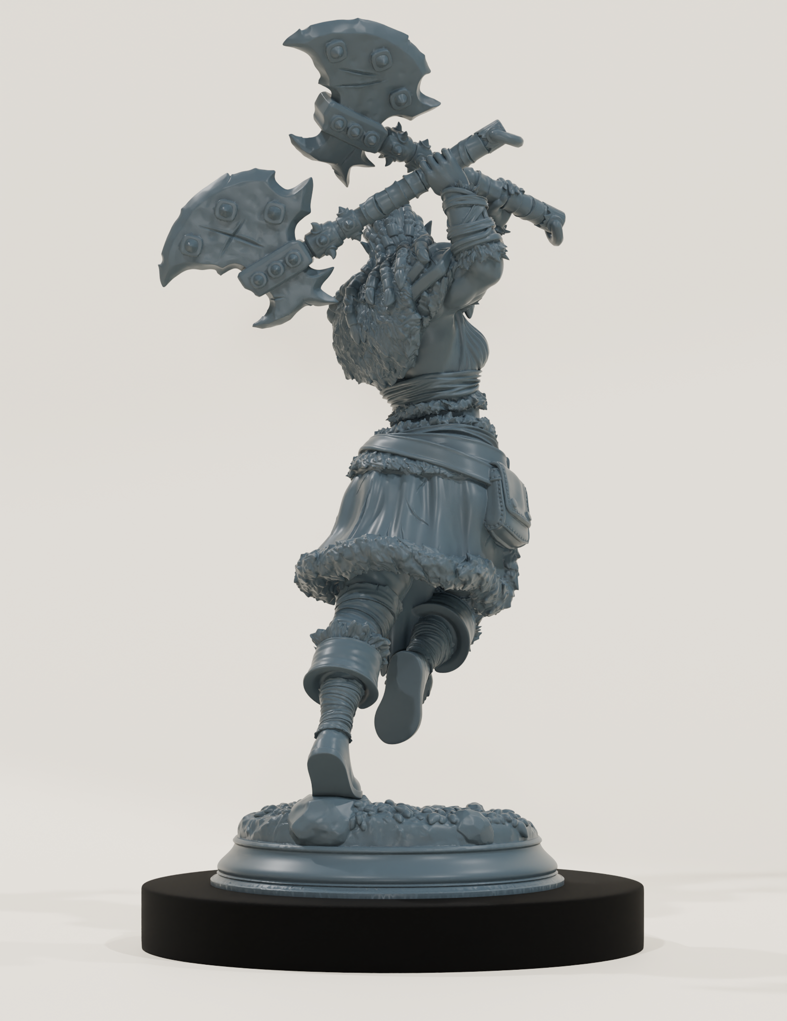 Cette figurine à peindre dégage une énergie cinétique incroyable. Elle représente une Barbare Demi-Orque (ou Orque) en pleine furie de combat, idéale pour les joueurs de DND incarnant la voie du Berserker ou du Totem. C'est également une excellente championne pour mener une bande de guerre tribale dans un Wargame.