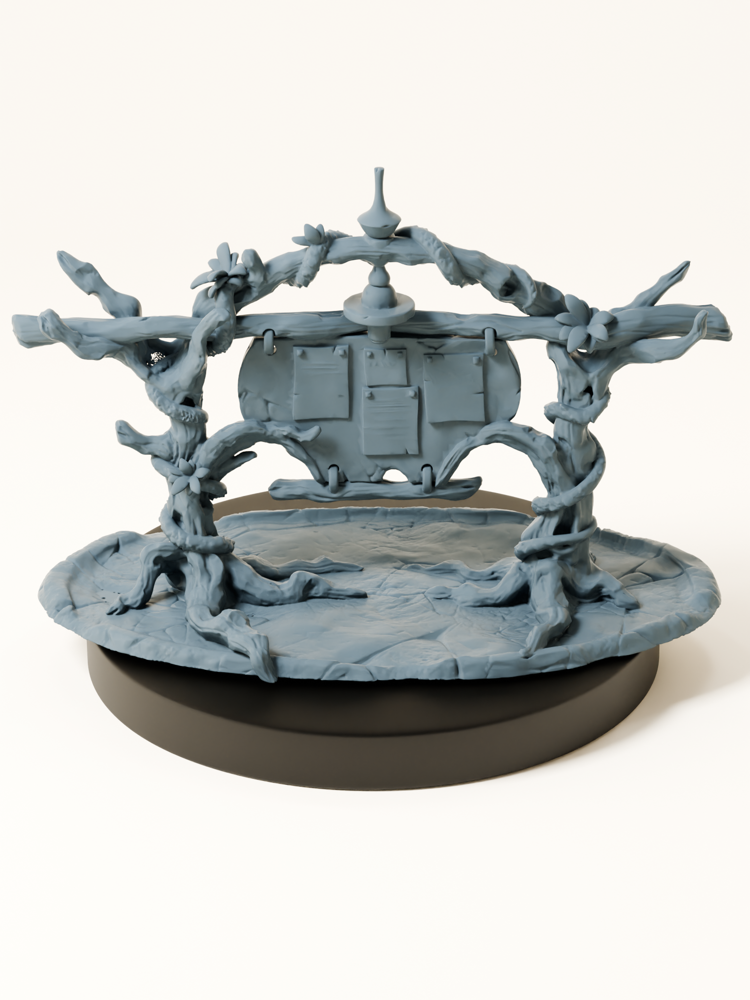 Monté au cœur de la canopée, ce campement est un sanctuaire de calme et de vigilance. Chaque tente est ornée de motifs inspirés des arbres, les elfes qui s’y trouvent sont en faction ou en rituel, gardiens de la forêt ou éclaireurs en mission. Autour du camp, les sentinelles se préparent, les prêtres récitent leurs incantations, et les flambeaux elfiques illuminent les feuilles. Ce décor ajoute instantanément profondeur et narration à vos sessions de JDR, et peut servir de base diplomatique, de repaire caché ou d’objectif stratégique selon vos scénarios.