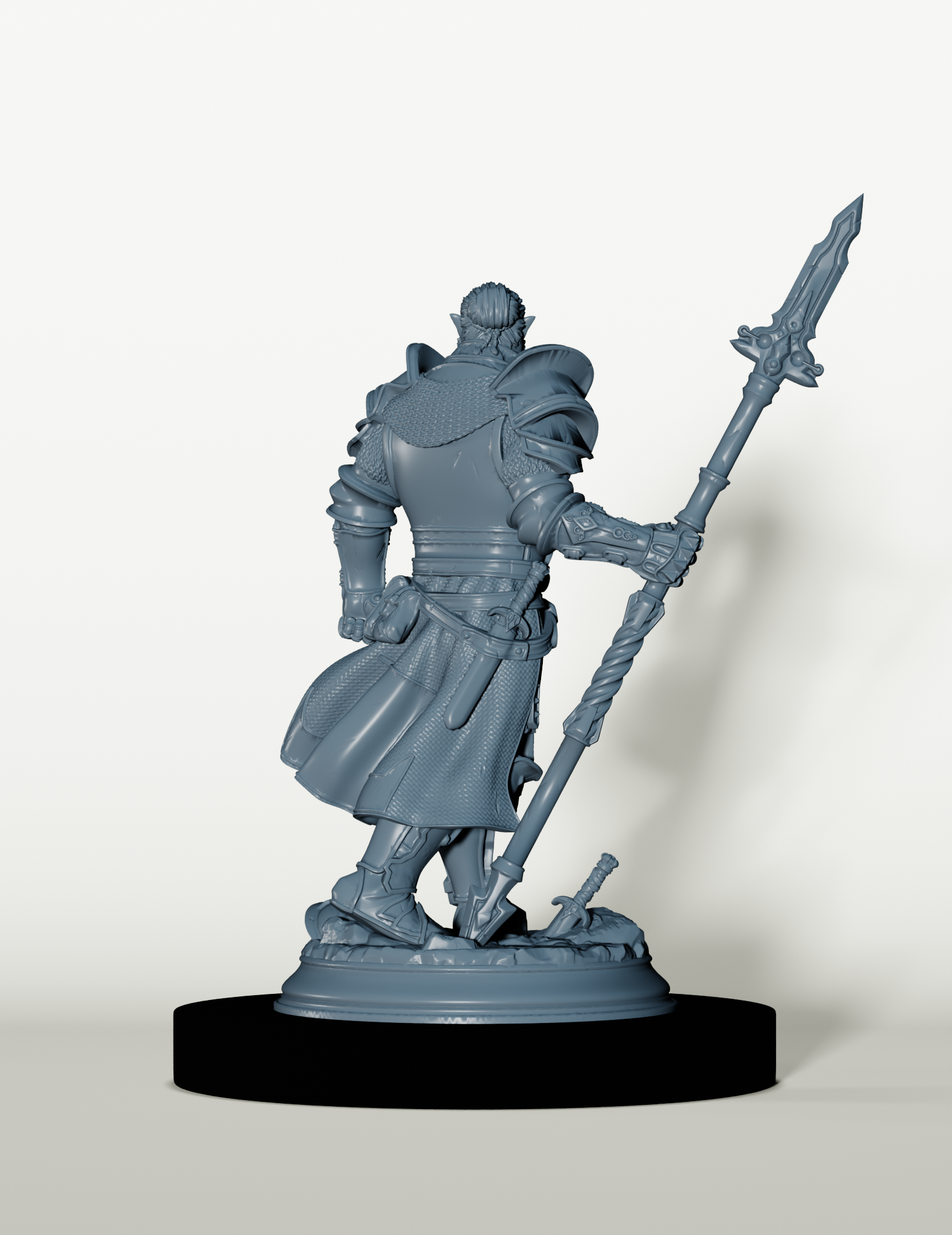 Cette figurine de personnage à peindre incarne l'archétype du protecteur imposant ou du guerrier spirituel pour vos sessions de jeu de rôle. Ce personnage est un Demi-Orque  de classe Guerrier ou Paladin, vêtu d'une armure de demi-plates qui souligne sa stature de combattant d'élite.
