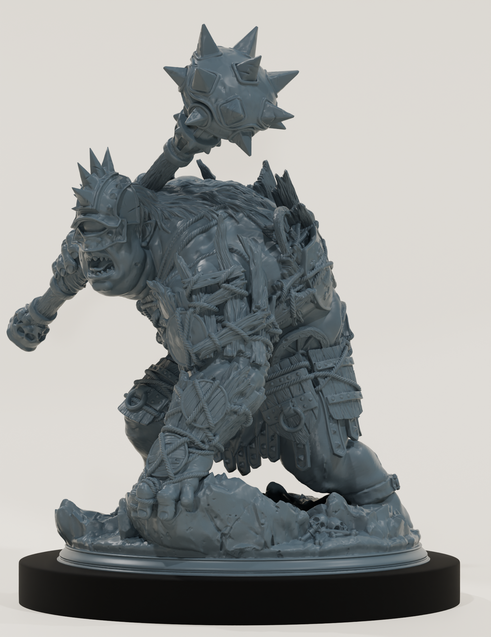 La sculpture impressionne par la lourdeur de l'équipement : plaques de métal rivetées, cotte de mailles et une masse d'armes titanesque. Pour les peintres de miniatures, c'est un projet d'envergure permettant de travailler le vieillissement des métaux (rouille, éraflures) et les textures de peau sur les parties exposées. Sa stature "Très Grande" (Huge) dominera visuellement toutes les autres figurines sur la table.