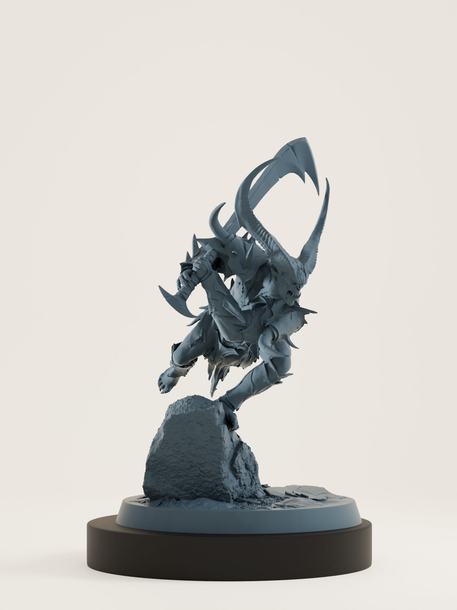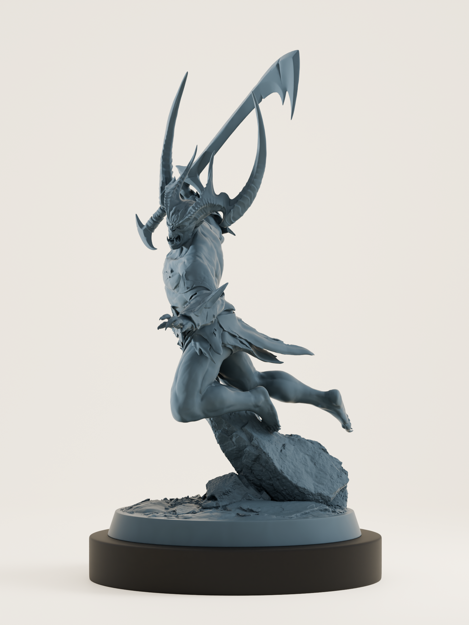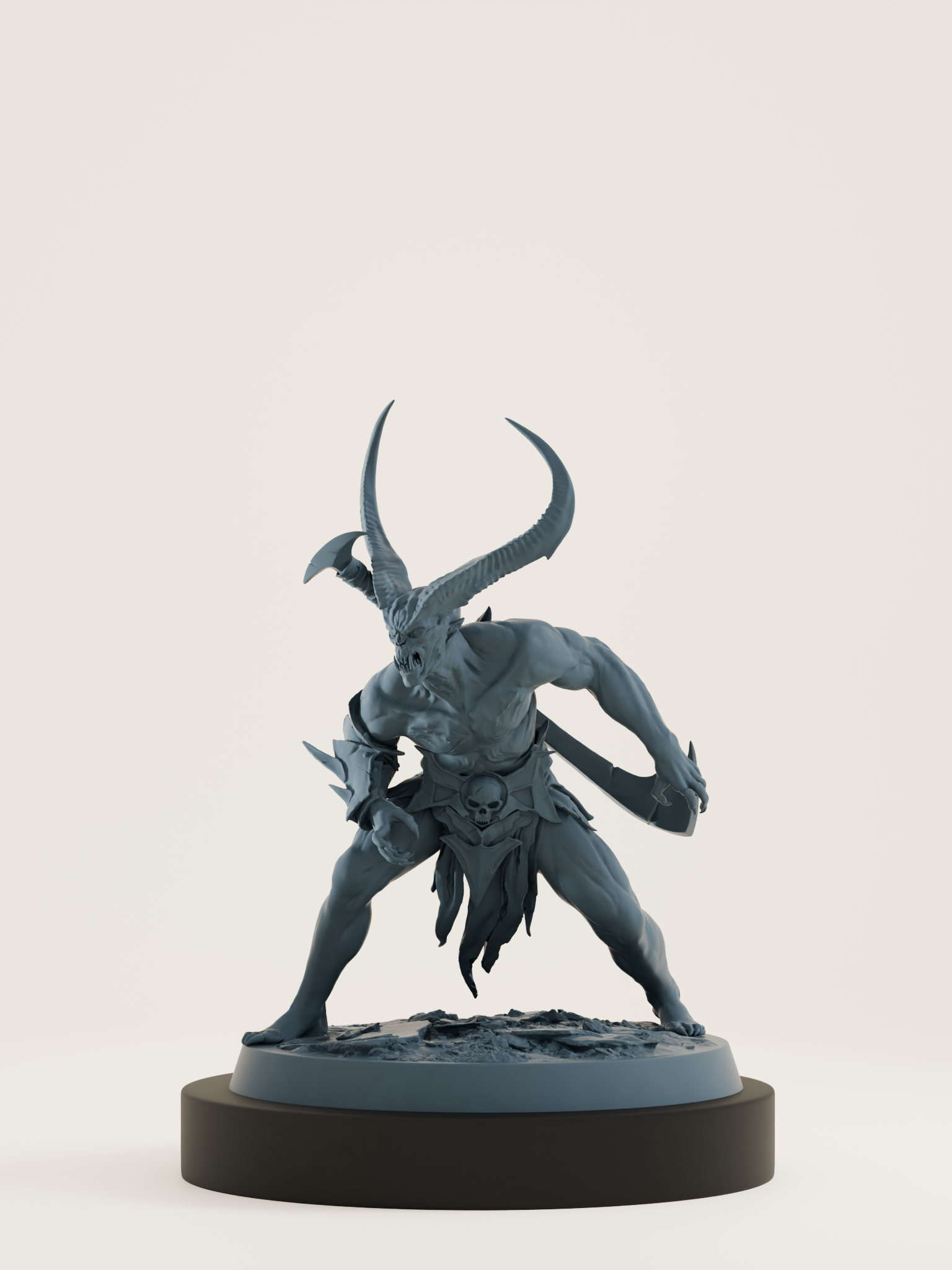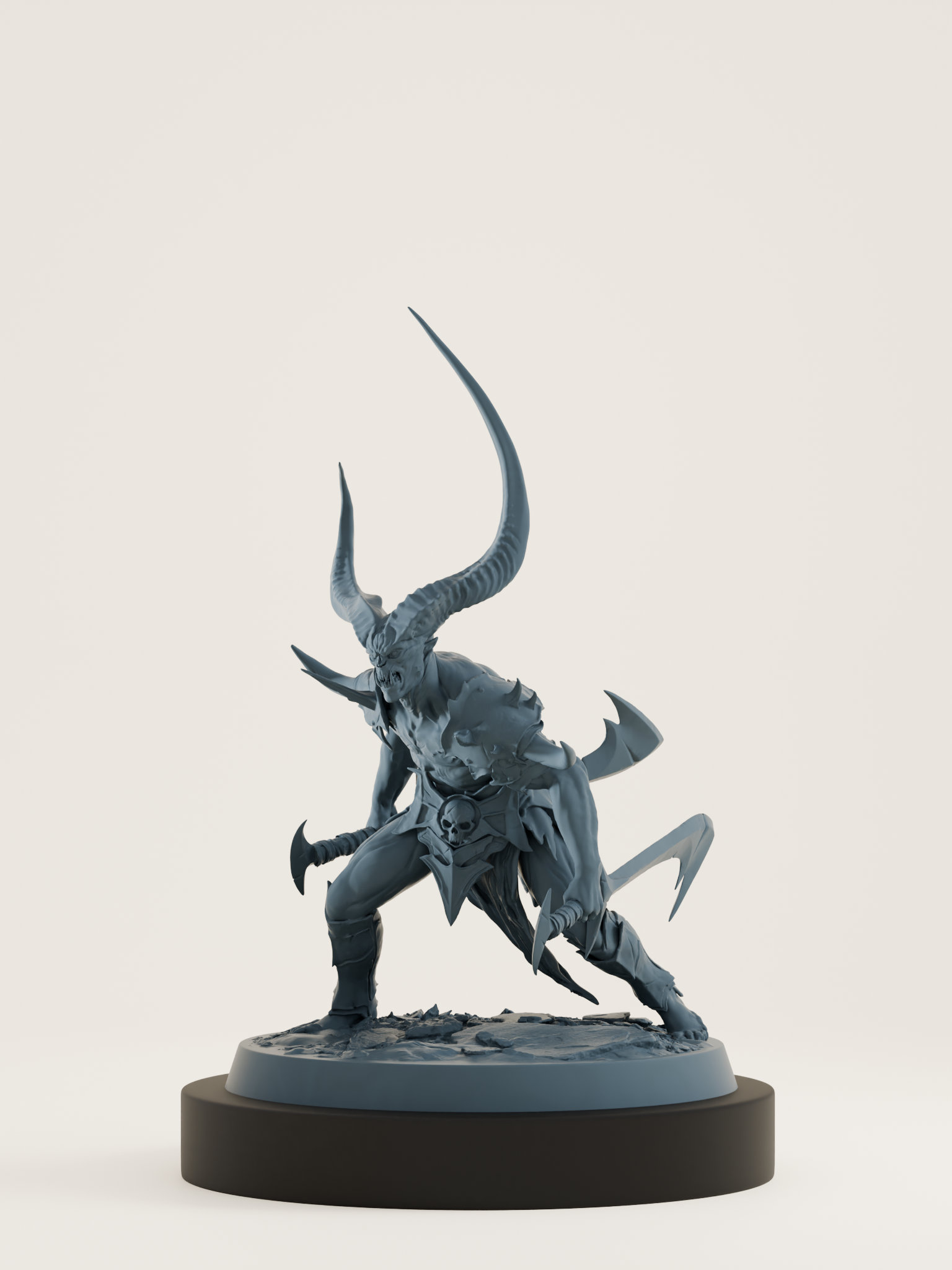 Ces créatures font partie de la Légion des Damnés, une armée démoniaque autrefois scellée dans les Enfers de Fer. Libérés par la chute d’un pacte ancien, ils avancent en rangs serrés, menés par une volonté commune : répandre la ruine dans les Royaumes du Haut. Chaque guerrier porte une armure fusionnée à sa chair et des cornes forgées dans la douleur de son asservissement.