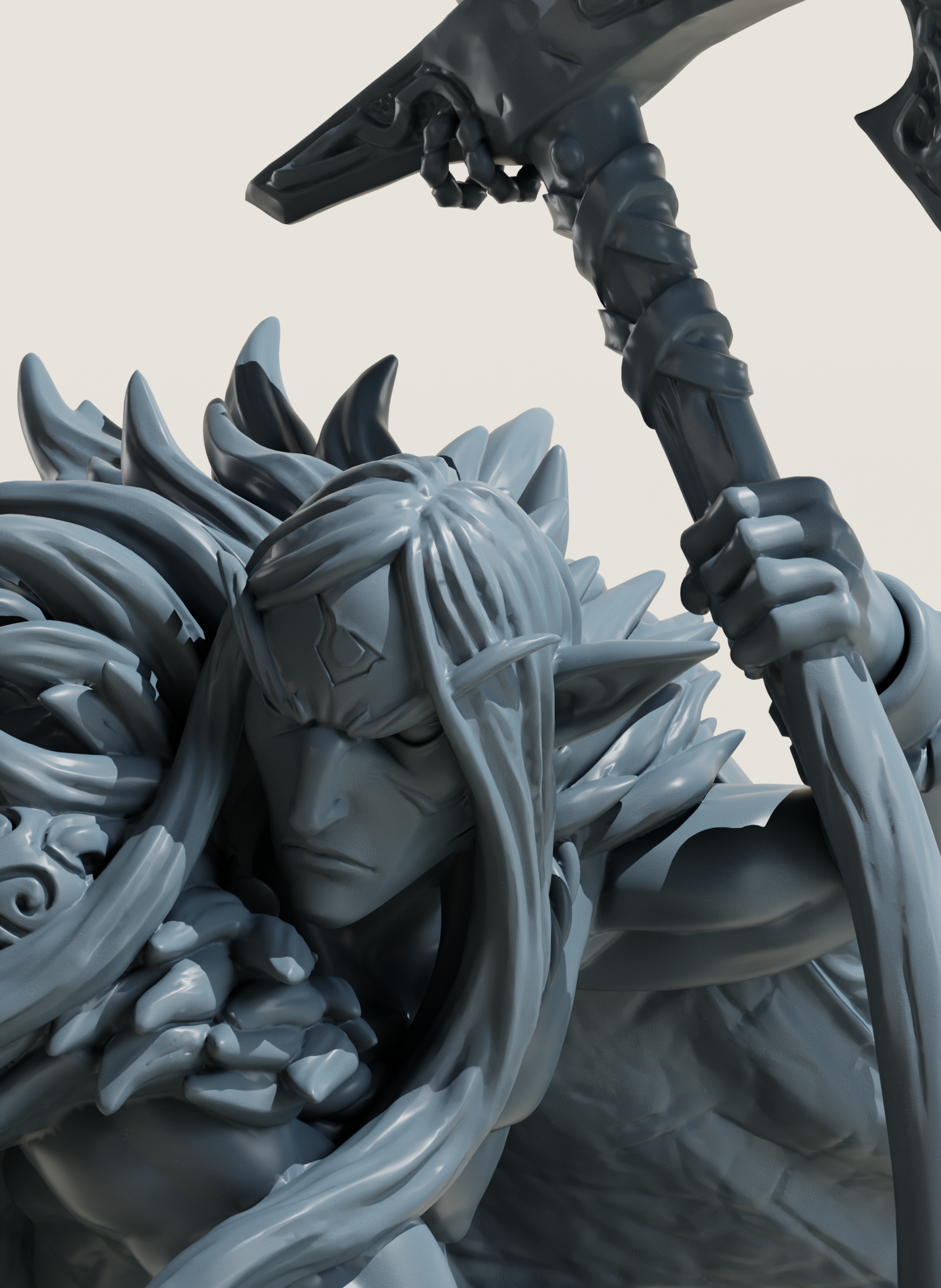 Cette figurine incarne toute la brutalité rituelle des elfes de Skutagaard. Kvallandir, surnommé “Tueur de Trolls”, est une légende vivante chez les Alfar : formé par les anciens rites druidiques et forgé par des siècles de combat contre les créatures des neiges, il n’est plus un simple chasseur, mais un champion sacré.