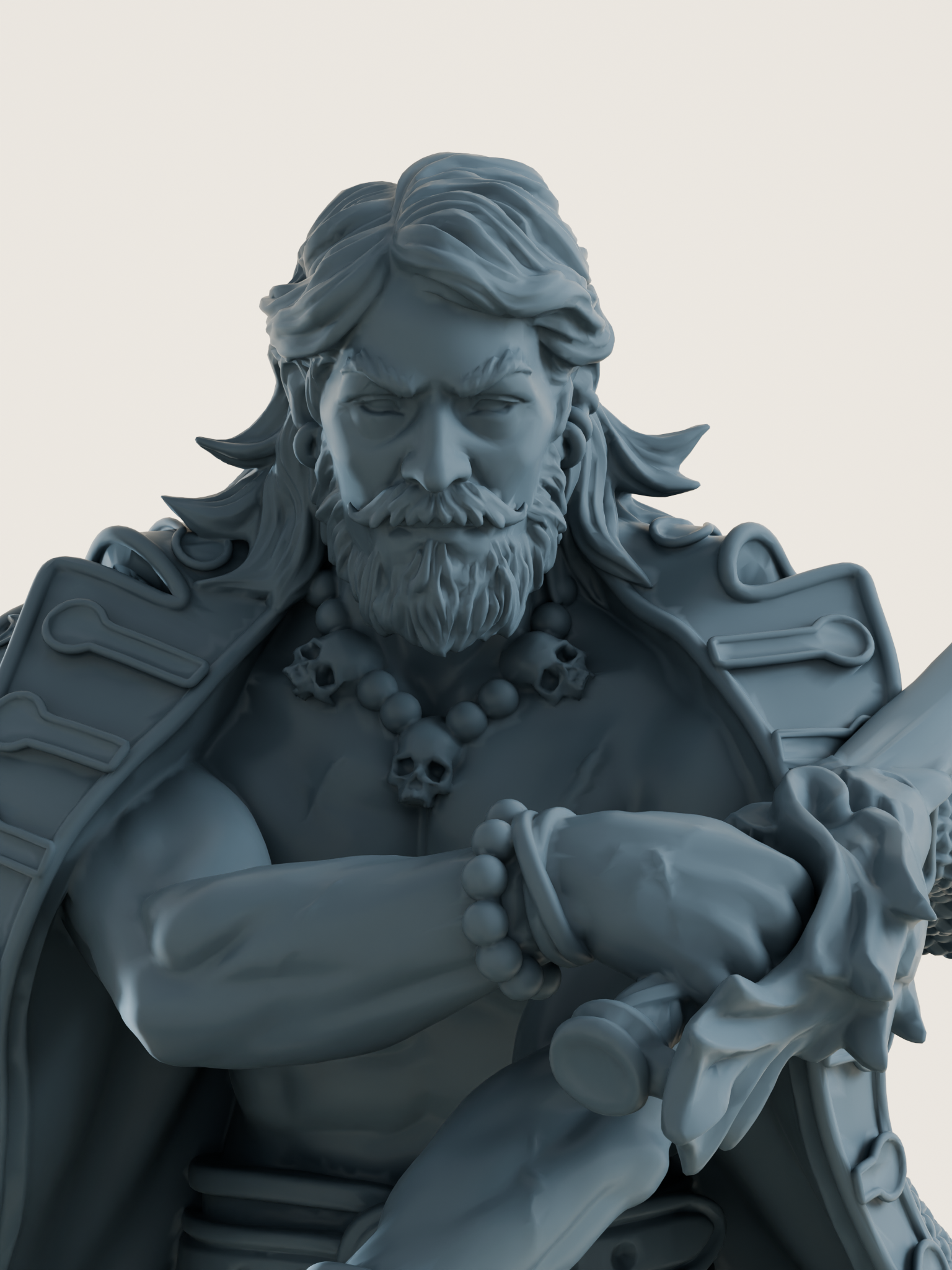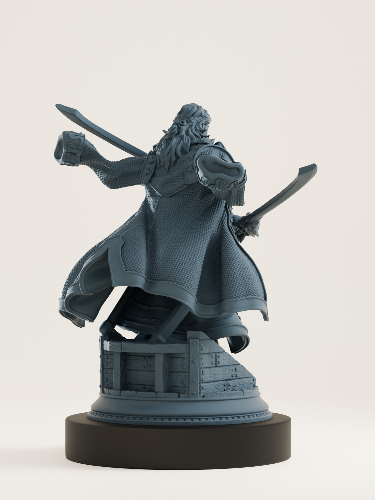 Figurine à peindre pour jeu de rôle représentant un humain chasseur de malédictions armé de deux cimeterres. Ce personnage est parfait pour vos campagnes D&D, Pathfinder ou tout autre univers où les malédictions marines, les sorciers renégats et les secrets anciens sont monnaie courante. Une miniature dynamique, idéale pour incarner un épéiste imprégné de magie, traquant les entités surnaturelles dans les eaux troubles.