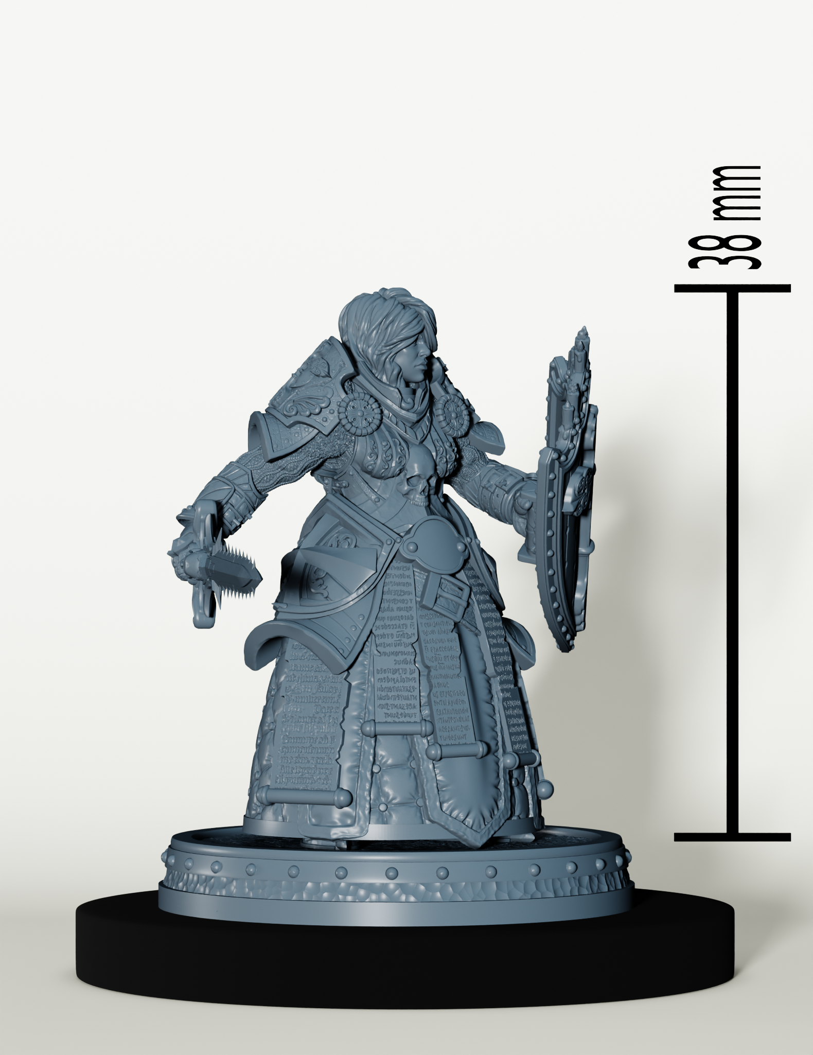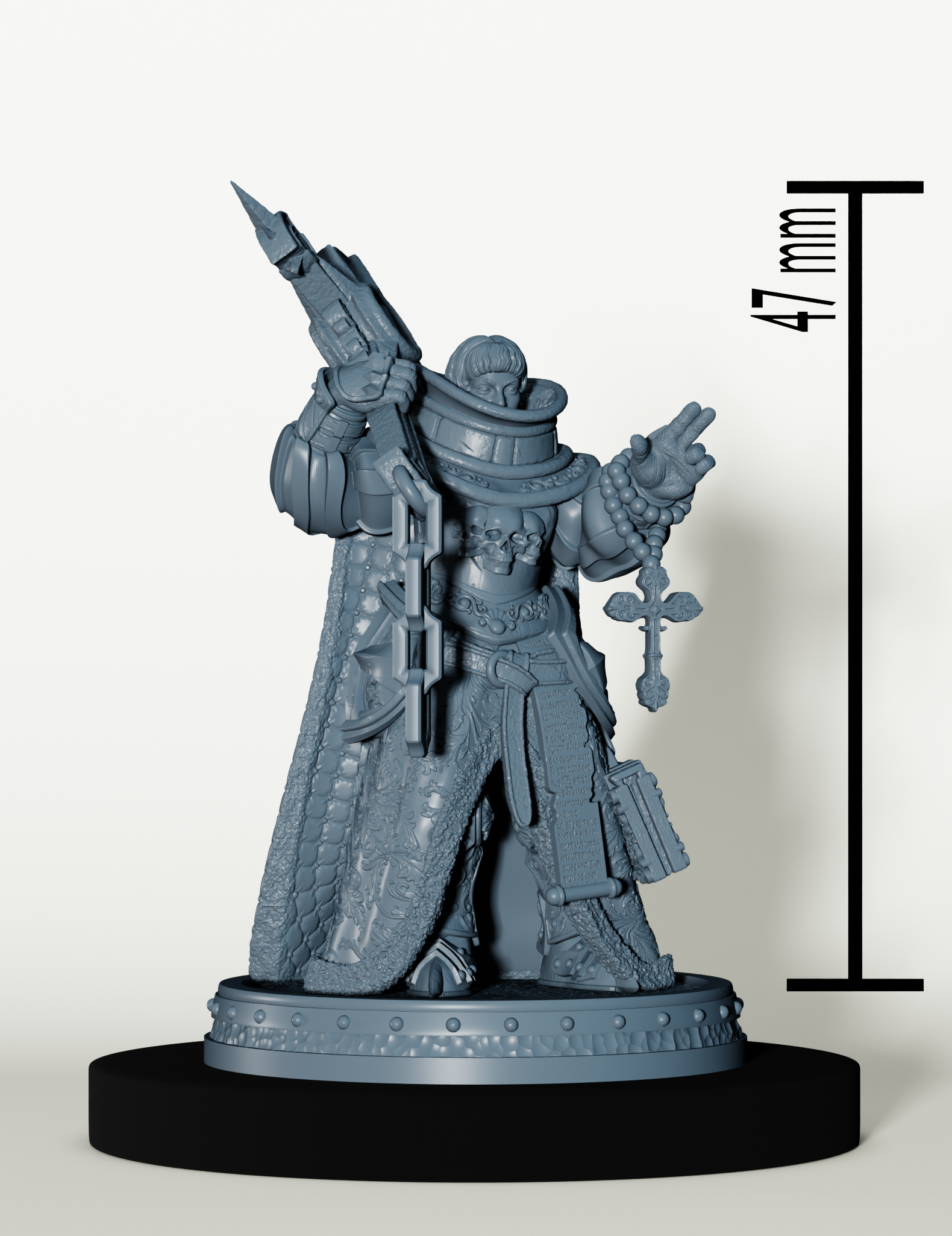 Par défaut, nous imprimons les figurines en échelle32 mm, si toutefois vous souhaitiez cette figurine dans une autre taille, je vous invite à nous contacter.