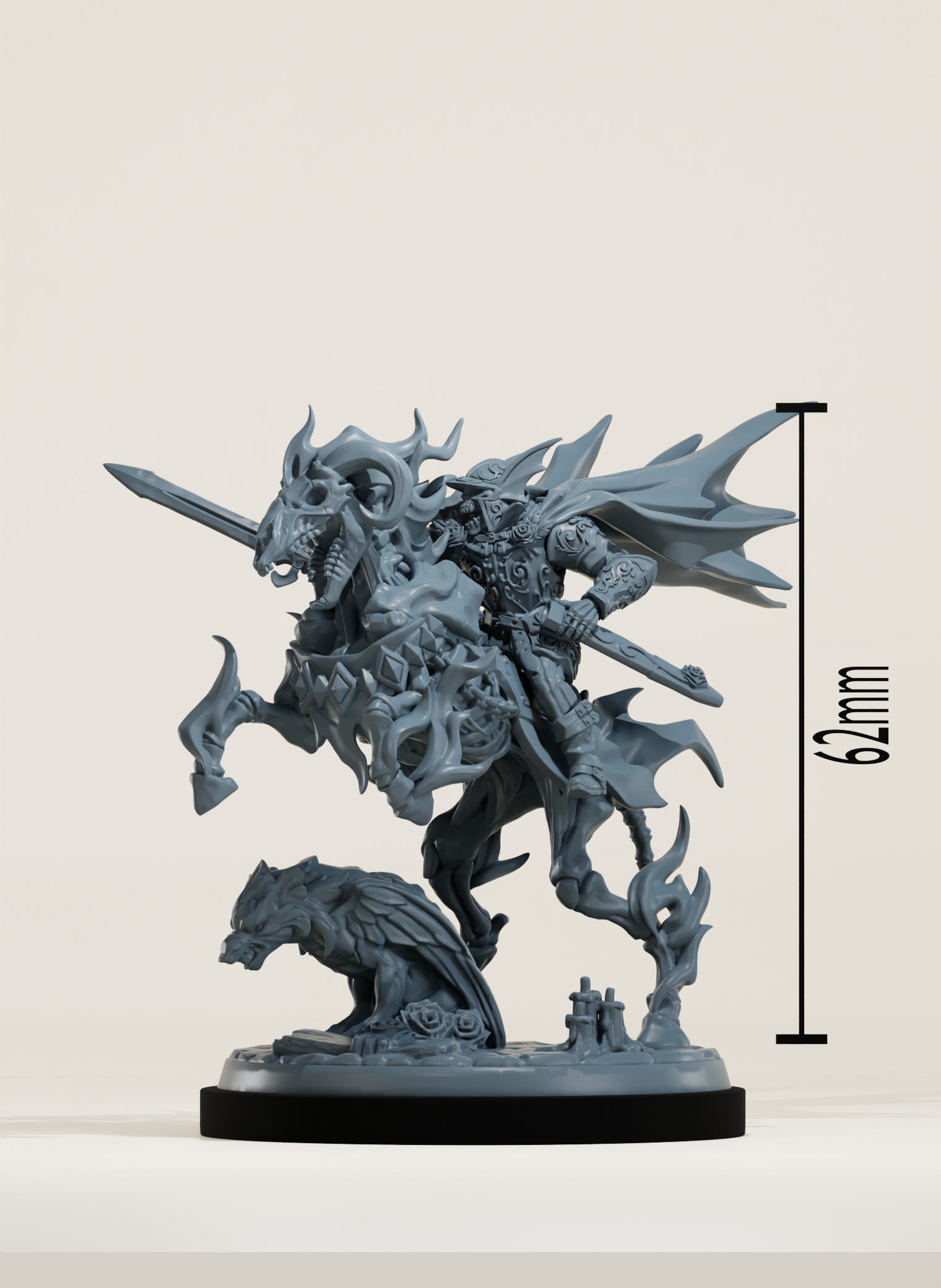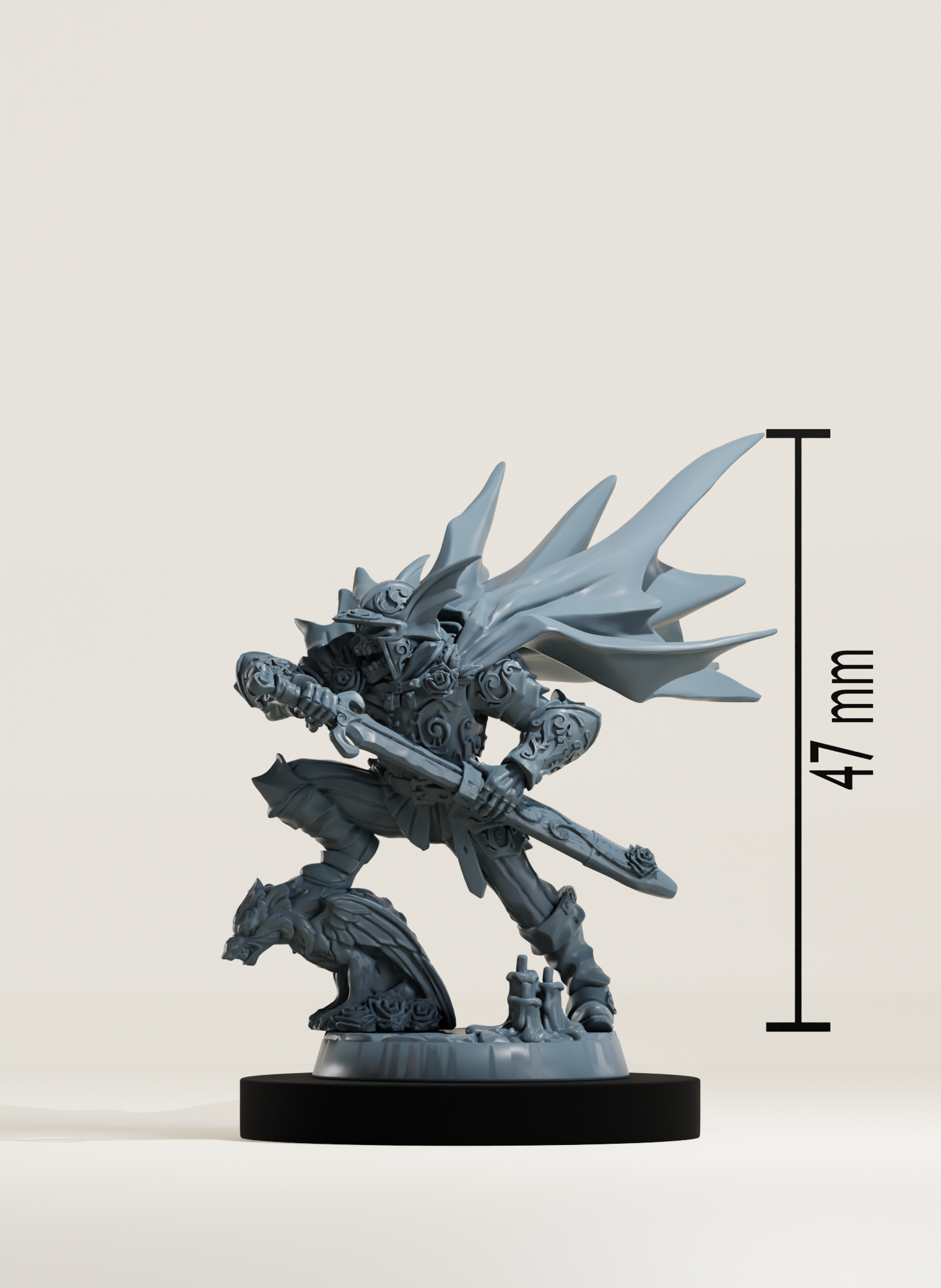 Par défaut, nous imprimons les figurines en équivalent 32 mm, si toutefois vous souhaitiez cette figurine dans une autre taille, je vous invite à nous contacter.