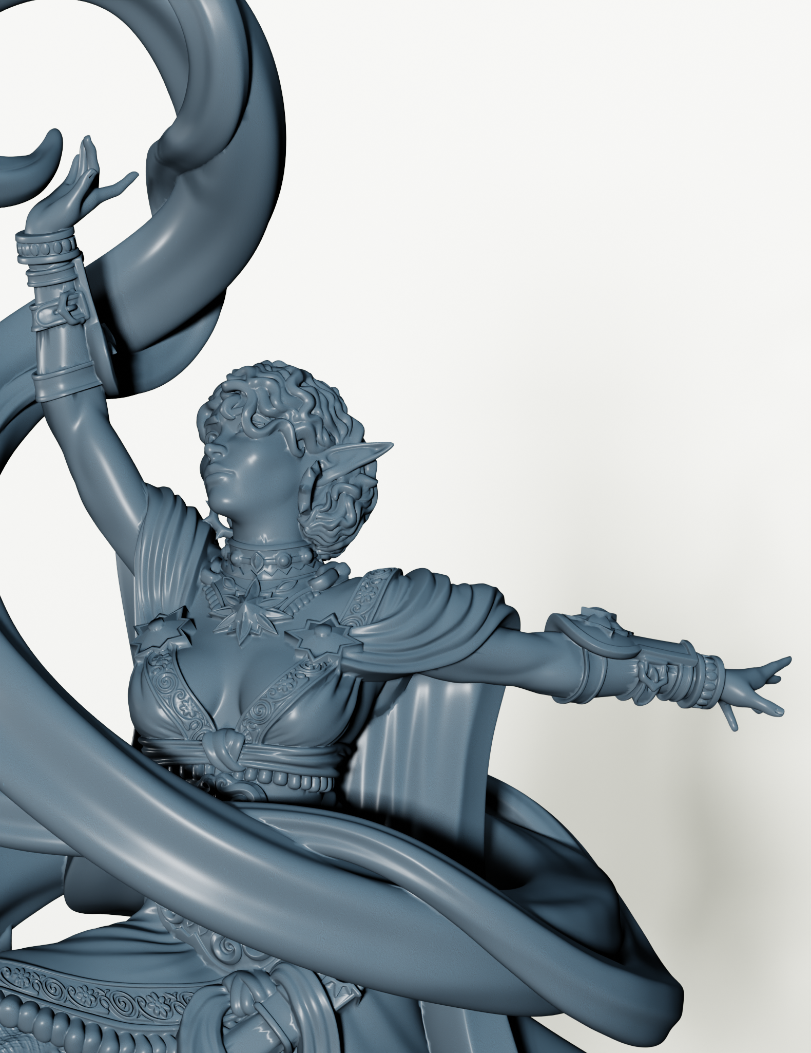 Sa posture dynamique et ses rubans d'énergie sculptés avec précision capturent l'instant où la magie devient une forme d'art, renforçant l'immersion visuelle de vos sessions de dark fantasy ou de haute magie. En déployant ce modèle, vous offrez à vos joueurs un visage concret à la dévotion solaire, capable de briser les charmes et de rester vigilante là où d'autres succomberaient au sommeil magique.
