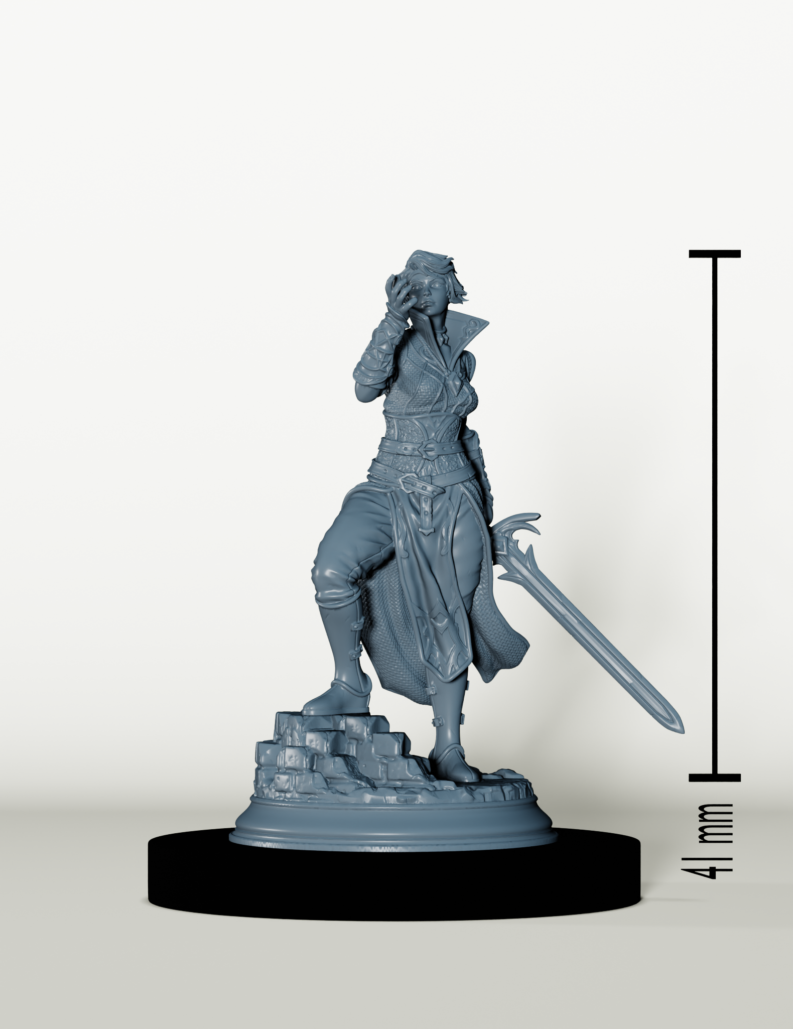 Par défaut, nous imprimons les figurines en échelle32 mm, si toutefois vous souhaitiez cette figurine dans une autre taille, je vous invite à nous contacter.