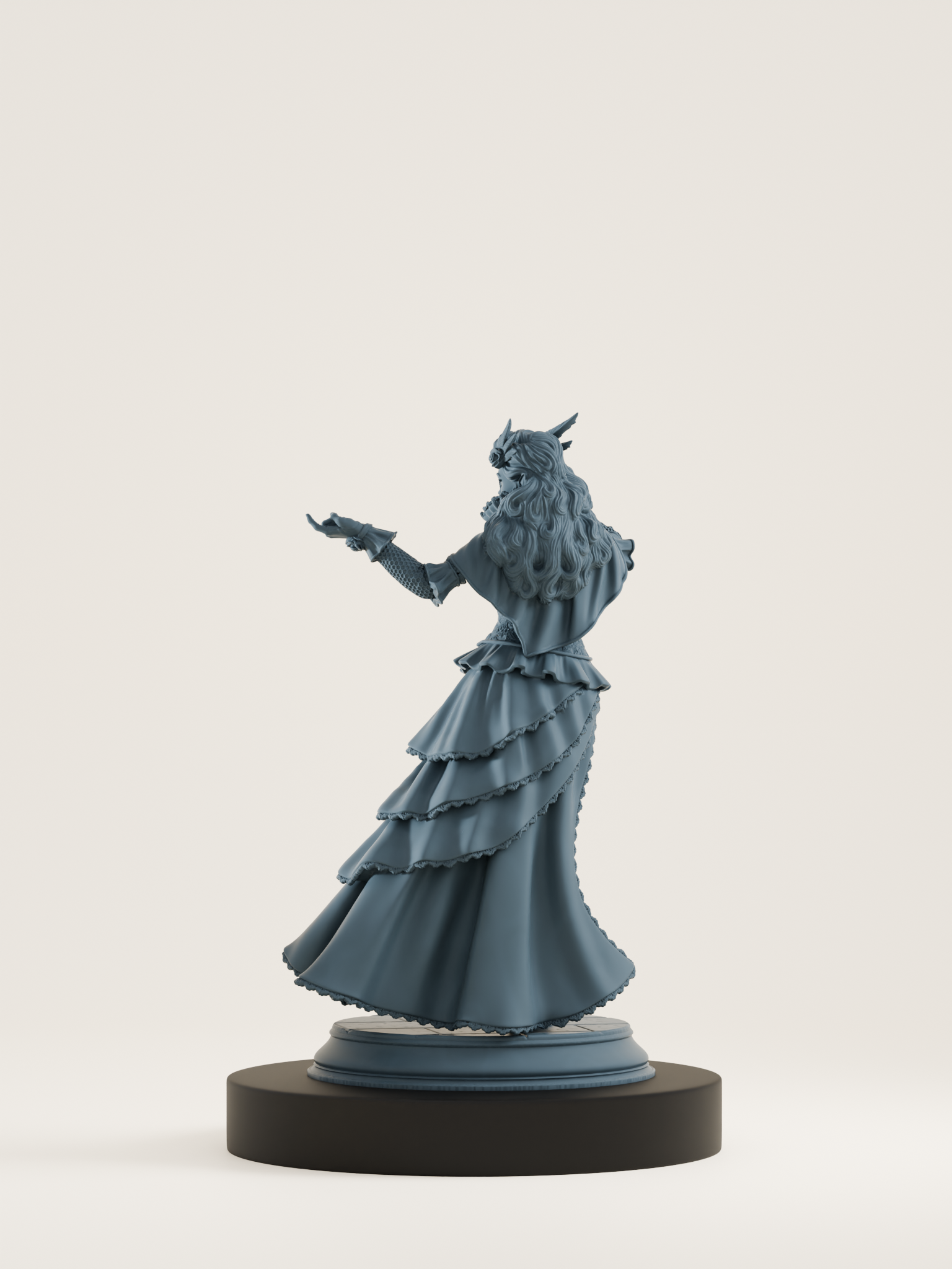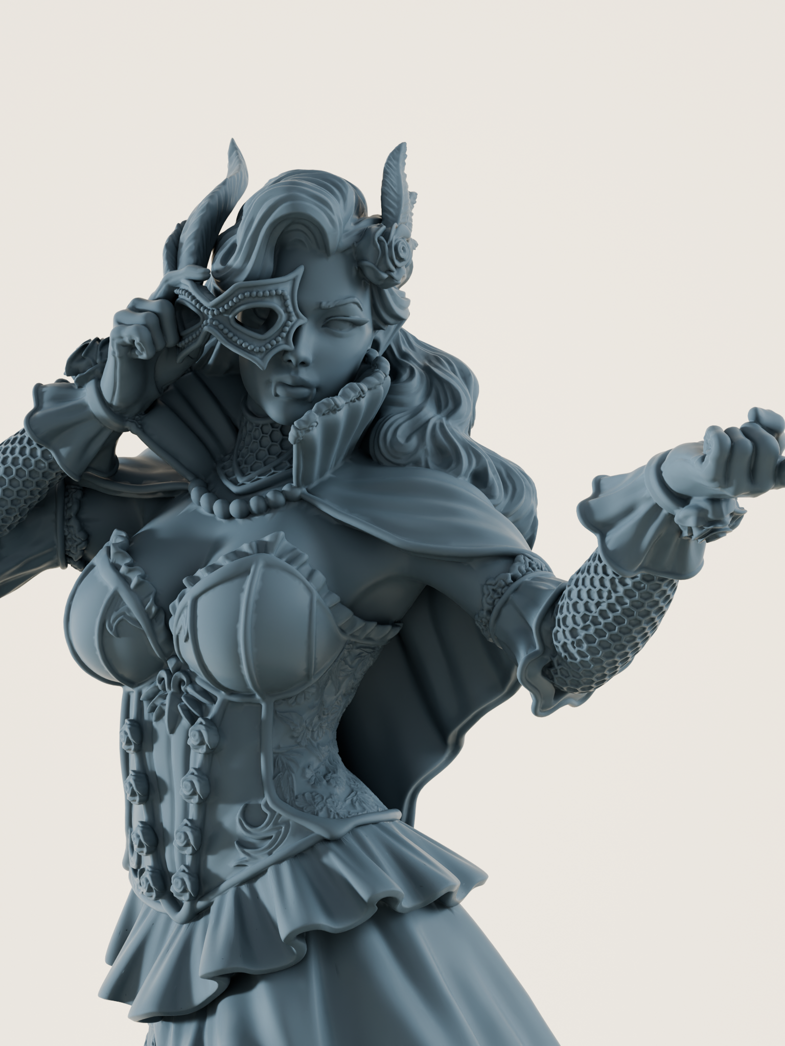 Figurine à peindre pour jeux de rôle, idéale pour vos parties de DND, Pathfinder ou pour un diorama gothique. Cette vampire en robe somptueuse évoque les bals masqués des nobles damnés. Sa pose raffinée, sa gestuelle séductrice et son masque raffiné en font un personnage aussi élégant que mortel : parfaite en tant que courtisane vampire, baronne dégénérée ou séductrice manipulatrice dans vos campagnes fantastiques.